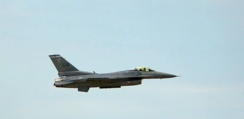 The second F-16 to fly makes a fast pass.
