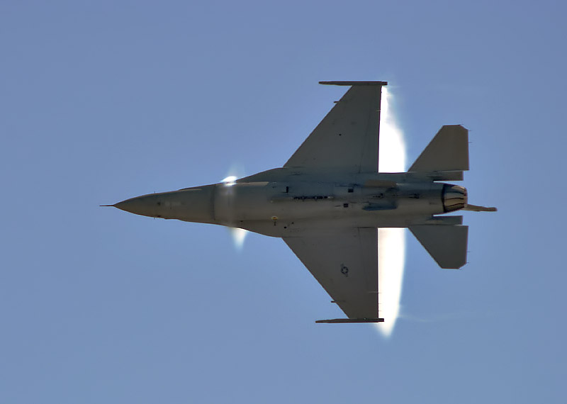 Slightly blurry shot of the F-16 pulling some g's.Filename: F16_Vapour_2793.jpg