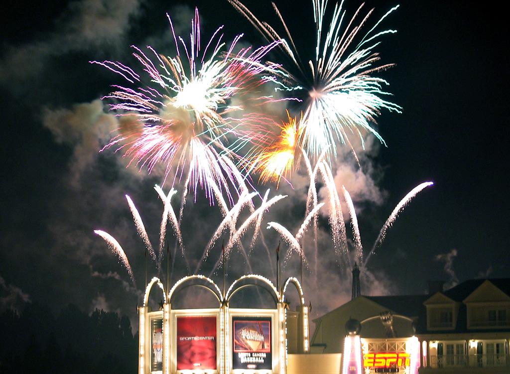 The Epcot Illuminations fireworks as seen from the Boardwalk.
