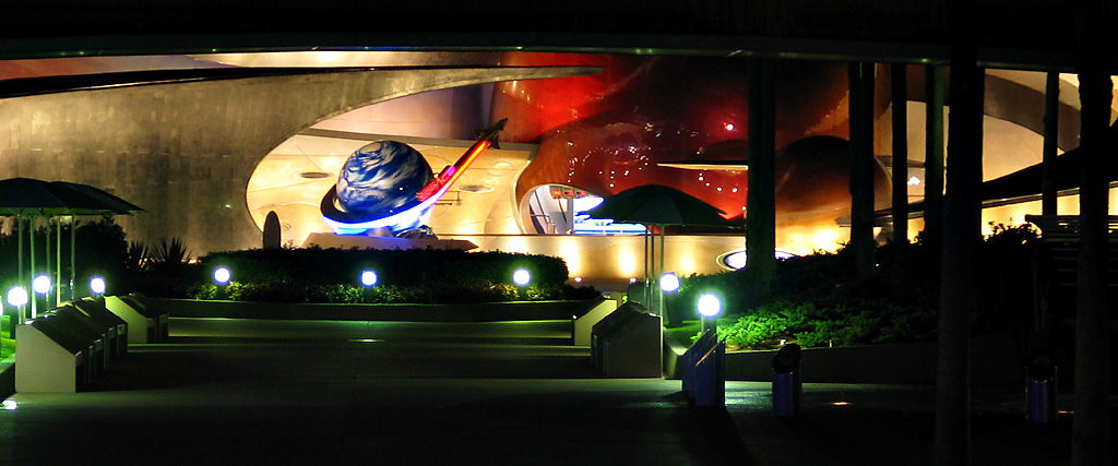 The exterior of Mission Space (Epcot) at night.Filename: Mission Space.jpgExposure: 1/3 at f/32003:08:20 20:53:33Canon Canon PowerShot G3
