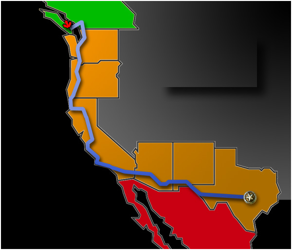 Here's the map of our route; move the mouse over it to select a state to look at.