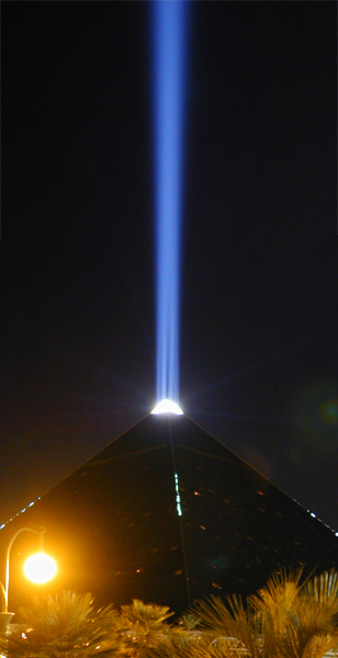The Luxor and its beam of light. This is a composite shot made from two images.Filename: Luxor.jpgExposure: f/3.22001:09:05 00:52:07NIKON E950